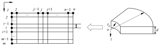 For the spatial dimension, the intervals z = [0, d] and r = [rd, Rd] are discretized into m and n nodes, respectively. The sketch of the calculation domain is shown in Figure 3.
