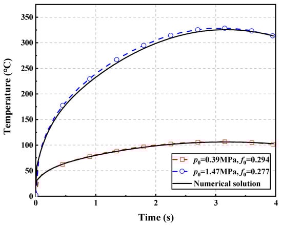 Figure 4 shows that the numerical results of the present model ignoring the thermal radiation are in good agreement with that of [7] in the cases of p0 = 0.39 MPa, f0 = 0.294 and p0 = 1.47 MPa, f0 = 0.277.