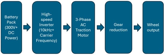 Electric vehicles typically use brushless AC induction or permanent magnet motors as their main method of propulsion. The energy for these motors is supplied by DC battery packs that are integrated into the vehicle. An inverter is used to convert the DC voltage from the battery into the three-phase AC power required to operate the motor. Using high carrier frequencies to switch the DC power on and off, the inverter simulates the AC power by utilizing a pulse-width modulated (PWM) signal to approximate the curve of a sine wave [1]. Figure 1 shows a simple overview of the architecture of most electric vehicles.