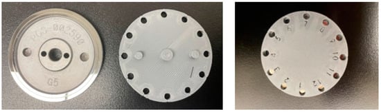 End of the test, the MTM disc (left), 3D printed cover plate upside down (center), and 3D cover plate placed on top of the MTM disc (right).