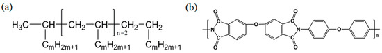 The chemical structures of the poly-α-olefin (a) and polyimide (b).