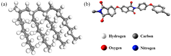 The all-atom models of the materials: (a) PAO, (b) PI.