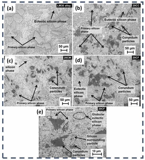 94]. characteristics. It was discovered that employing a 1:4 ratio of finer to coarser particles increases wear resistance, increases hardness, and guarantees more efficient load transfer from the matrix to the reinforcing elements. In AMCs with 15–20 wt.% of ZrSiO