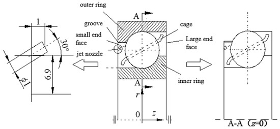 Under high-speed operating conditions, angular contact ball bearings can support both axial and radial loads. A larger contact angle allows for a greater axial load capacity. Oil injection lubrication is a common method for high-speed rolling bearings, offering a straightforward structure, ease of control, and effective lubrication performance [1,2].