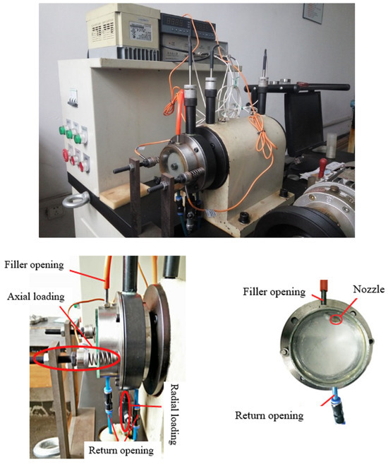 This experiment was conducted using the BGT-1A bearing comprehensive performance testing machine. The spindle features frequency conversion speed regulation, and the test time can be preset, the load is stable, and the computer can automatically record and save the data. Figure 12 illustrates the improved device of the testing machine.
