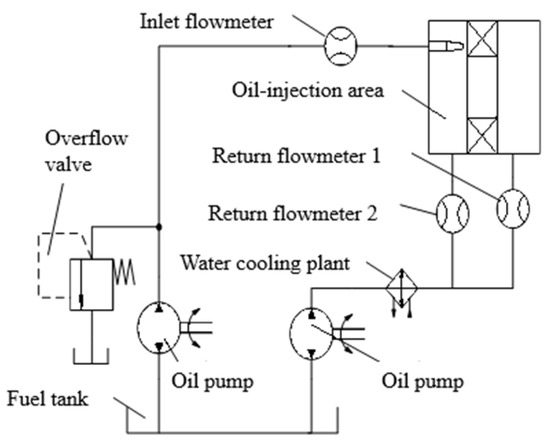 The test bearing was operated for 12 h at a speed of 1000 r/min with an oil supply rate of 0.07 L/min. Relevant test conditions, including bearing speed and fuel injection pressure, were adjusted accordingly. A high-speed camera was activated through the tempered glass of the bearing end cap to capture the trend of oil entering the bearing chamber via the nozzle. Video processing software (CV 3.6.800) compatible with the high-speed camera was used to analyze the recorded oil flow. Figure 13 illustrates the principle of oil injection lubrication.