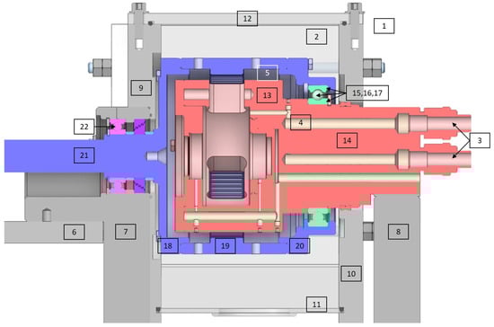 Detailed analysis of power loss distribution is limited. Studies have shown [15] that load-independent losses are significant at high speeds, justifying further investigation. The majority of these studies focus on planetary gear sets with a fixed ring gear. For example, Durand de Gevigney et al. examined the load-independent power loss of a planetary gear set using experimental results and the thermal network method [16]. Some studies use CFD methods to compute load-independent power losses or to analyze flows inside a planetary gearbox [17,18,19,20]. Understanding oil flows within a gearbox can provide valuable information about the power losses associated with the lubricant.
