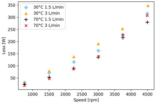 Power loss separation for an oil injection temperature of 30 °C and an oil flow rate of 1.5 L/min.
