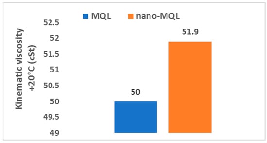 Kinematic viscosity values of cutting fluids used in MQL and nano-MQL methods.