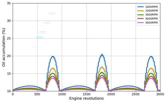 Oil accumulation after data processing (E: 1000 RPM, : 0.0036 ).