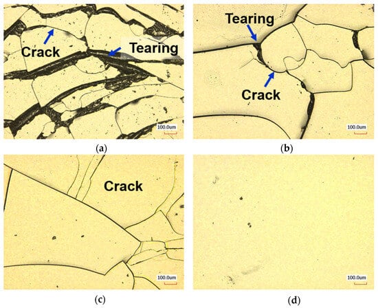 Surface damage images of PDMS grafted mPEG-MA after friction test under water lubrication (a) 10% 12H, (b) 10% 18H, (c) 10% 24H, and (d) 20% 12H.