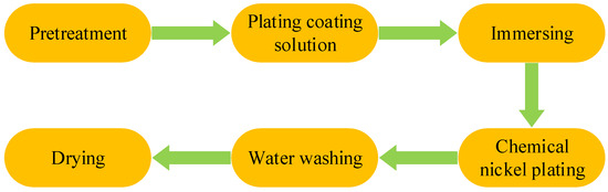 This study explores the process of preparing nickel-plated coatings [25,26] on the inner walls of pipelines using a chemical plating technique [27,28]. The processing method of chemical nickel plating is used because the inner coating of the pipe wall in this paper is not easy to process. The method of chemical nickel plating can ensure the quality of the coating so that it can achieve the effect of drag reduction. The investigation focused on utilizing 45# hydraulic steel tubing as the primary metal substrate, renowned for its exceptional mechanical properties and corrosion resistance within hydraulic systems. Chemical plating entails depositing metal ions from a plating-coating solution onto the substrate’s surface, creating a uniform and dense coating. This method, conducted at room temperature, offers superior control and uniformity compared to alternative plating methods. The study leveraged the benefits of chemical plating to apply nickel to the inner wall surface of the 45# hydraulic steel tubing to enhance fluid flow efficiency within the pipeline. I was achieving precise control over the thickness and uniformity of the plating layer, which involved strategically selecting plating and coating process parameters and tailoring the composition of plating and coating solutions to meet diverse engineering demands. Adopting chemical plating for developing nickel coatings on inner pipeline walls offers an effective solution to augment pipeline performance and reliability. This technological approach serves as a gateway to advancing hydraulic systems and improving piping systems.
