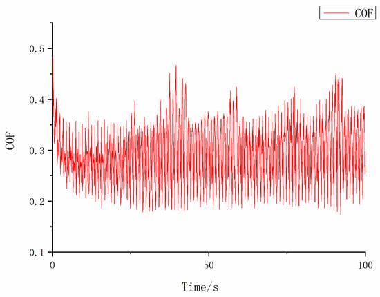 When the tribometer tests 100 laps, we obtain enough and tend to stabilize the COF value; 100 laps of the COF value are sufficient for the needs of the analysis of this experiment. For the experiment of detecting COF values of different media, we set the test time to 100 laps at the same time in order to ensure the consistency and comparability of the test.