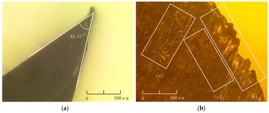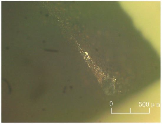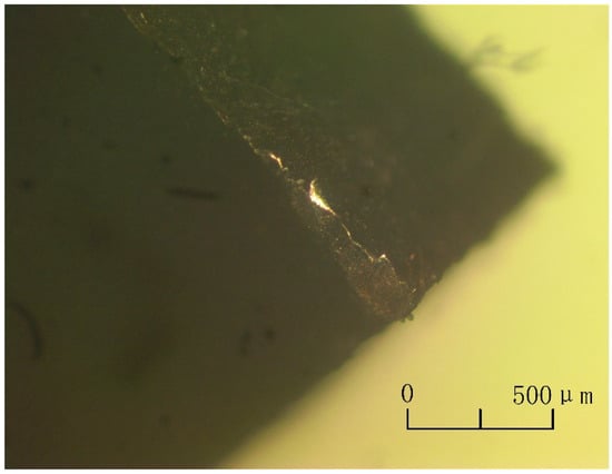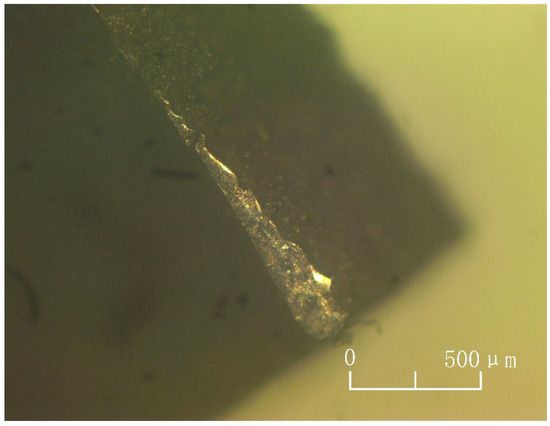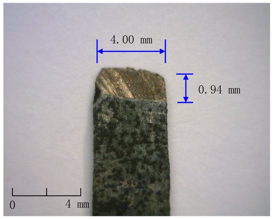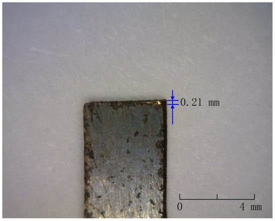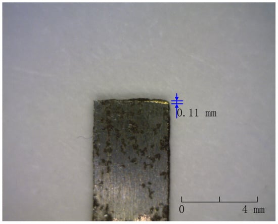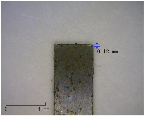 After 50 h of operation at 1 r/s under 10 N load, the leaf spring specimen was removed, and obvious wear marks were visible, as shown in Figure 6.