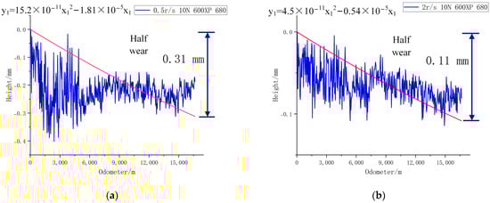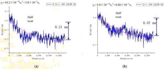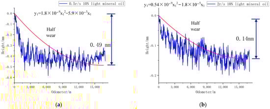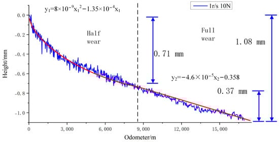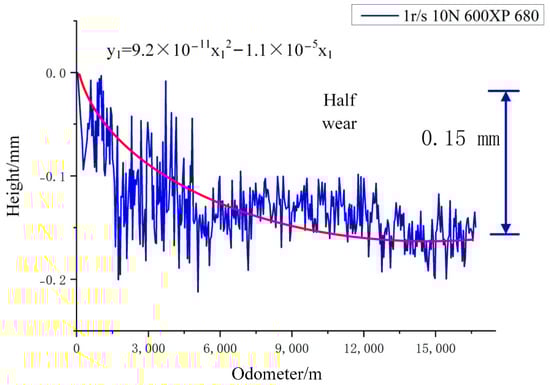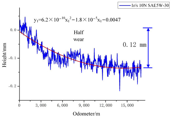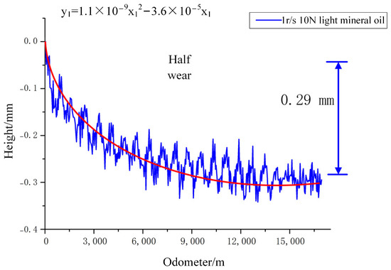 At a 15 N load, the leaf spring specimens were all in half-wear condition with a final wear height of 0.23 mm. The fitting function is as follows: