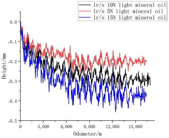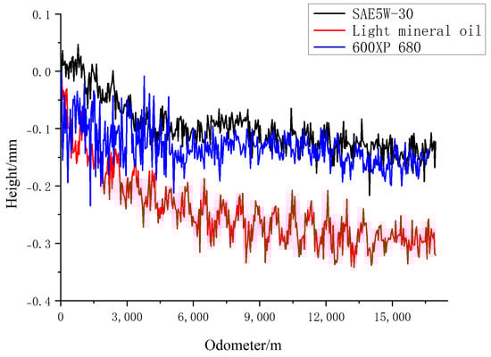 According to the comparison of three different load experiments, it can be seen that when light mineral oil, SAE5W-30 lubricant, and 600XP-680 lubricant oil are used as a lubricating medium in the half-wear stage, different loads are operated for the same time, and the higher the load, the higher the wear. When different loads are run for the same mileage, the greater the load, the greater the wear.