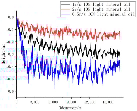 The three-speed wear comparison graphs are shown in Figure 35. The wear curves of three types of lubricating oils under different loads are shown in Table 4.