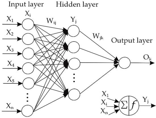Mostly used ANNs are the simplest ones, which consist of an input layer, hidden layer, and an output layer, each layer having its own number of neurons. Commonly used transfer functions are pure linear (purelin), hyperbolic tangent sigmoid (tansig), and logarithmic sigmoid (logsig). The most applied training algorithm is backpropagation, which employs a gradient descent technique to minimise error for specific training patterns. It involves adjusting the initially assigned weights of synapses iteratively until a low sum of square error (R) is achieved. The mean square error (MSE) across all patterns is calculated to evaluate the network’s performance as follows [51]: