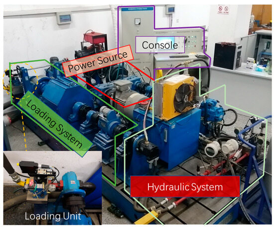 Zhao et al. [19] pointed out that the mismatch between the load characteristics and the drive mode is the main reason for the inefficiency of the system through modelling and experiments. Gu et al. [10] enhanced the online identification technique of kinetic stiffness graphical representation by examining the relationship between internal and external characteristics of speed fluctuations in the electromechanical–hydraulic system. They also discussed the inter-coupling relationship between electromechanical–hydraulic systems. Kumar investigated the steady-state performance [20] and dynamic characteristics [21] of a closed hydraulic multi-pump drive system for two different modes of operation, a single-motor drive and dual-motor drive, through modelling and experimentation. Meanwhile, Gu et al. [22] explored the issue of speed stiffness in hydraulic machine milling systems, identifying a quadratic connection between variations in the pressure motor’s displacement and the volumetric speed control circuit’s speed stiffness. Xu [23] presented a theory for measuring the volume loss of piston pumps, accounting for lubrication clearance. Furthermore, they explored the non-linear correlation between the displacement and efficiency of the pumps.