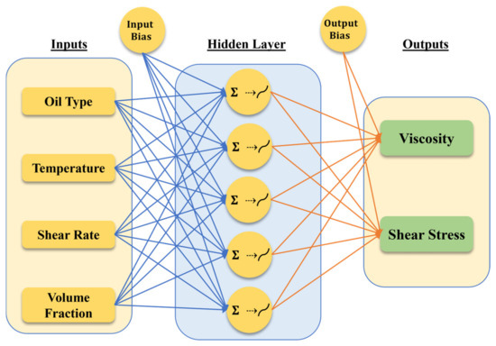 Using the developed ANN model, variation in biolubricant viscosity can be accurately predicted for different operating temperatures and weight concentrations that lie in between the initially considered values. The predicted values can be validated by conducting experimental rheological study on different nanobiolubricants for such in-between weight concentrations. This could help researchers to utilize the developed ANN model to precisely predict the viscosity variations for weight concentrations and temperatures other than those defined in this study. The neural network achieved its optimal and best structure through the method depicted in Figure 4.