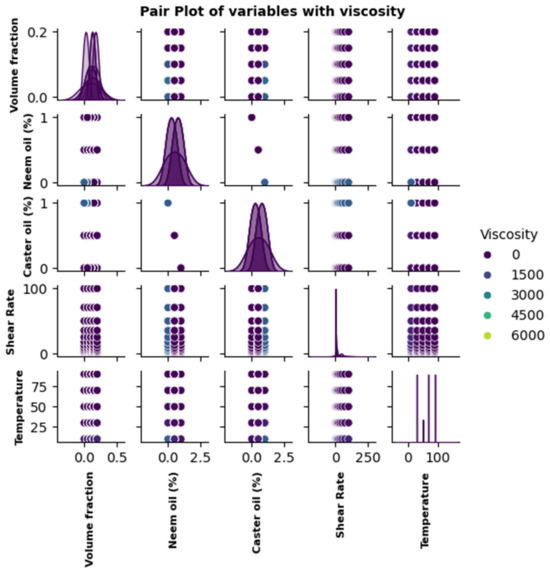 Pair plot of various input parameters with lubricant viscosity.