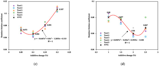 Rotation friction coefficient test results of four spherical hinge lubrication coatings. (a) PTG. (b) GPG. (c) CNG. (d) TDG.