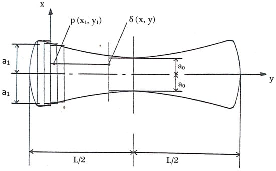 Figure 5 shows a typical axial pressure profile for a straight-edged (unprofiled) roller ( indenting a semi-infinite elastic half-space subjected to a contact load of 3683.6 N, based on a total bearing reaction , obtained using [42,55] where N = 12: