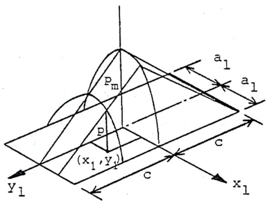 The lateral cross-sectional pressure profile is assumed to be elliptical, with a uniform longitudinal pressure distribution (Figure 1). The central pressure is as follows: