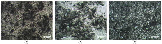 Tribological tests were carried out for the hybrid composite with A356 as the base material and included a reinforcement content of 10 wt.% SiC with a particle size of 39 µm and reinforcement of 1, 3, and 5 wt.% Gr with a particle size of 35 µm, which were produced by the composite casting process. The selected types and sizes of reinforcing particles were made on the basis of previous analyses of the literature data, and then certain trial tests were performed; finally, it was decided which composition and which type of reinforcement would be used. A detailed analysis of the above can be found in [26]. A more detailed description of the procedure for obtaining the mentioned materials can be found in the literature [27,28]. Figure 1 shows the microstructures of hybrid composites with 1, 3, and 5 wt.% content of Gr reinforcement.