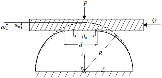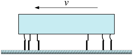In order to study the motion state of the convex peaks on the contact surface of microscopic angle objects. Haessing and Friedland established a microscopic sideburns model [41,42], as shown in Figure 5. The microscopic object motion process is assumed to be elastic sideburns and rigid sideburns; above the moving elastic sideburns, below the stationary rigid sideburns, and when the two move against each other, the contact interface will produce friction. The expression is
