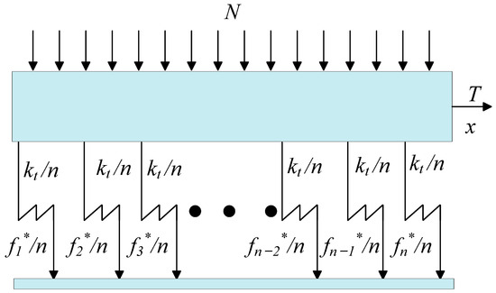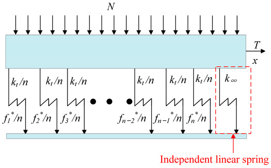During the initial loading stage, the sliding damper is subjected to a tangential tension T, which produces a displacement x. When the tangential displacement x is less than the yield displacement , the yield force of a single Jenkins cell is