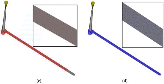 Figure 4 displays the tempering system and the mold block. The trajectory of tempering channels, including the inlet and outlet of the tempering medium, is derived from the real mold concept. The core, cavity, and other mold plates were simplified as blocks for the sake of simulation. Geometry defined in this way was subsequently also hatched by a 3D network and then checked. After this step, it was necessary to set all other conditions of the simulation, which can be seen in Table 5.