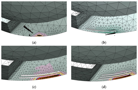 Effect of the number of micro-grooves on stresses. (a) Conventional tools; (b) G1; (c) G2; (d) G3.