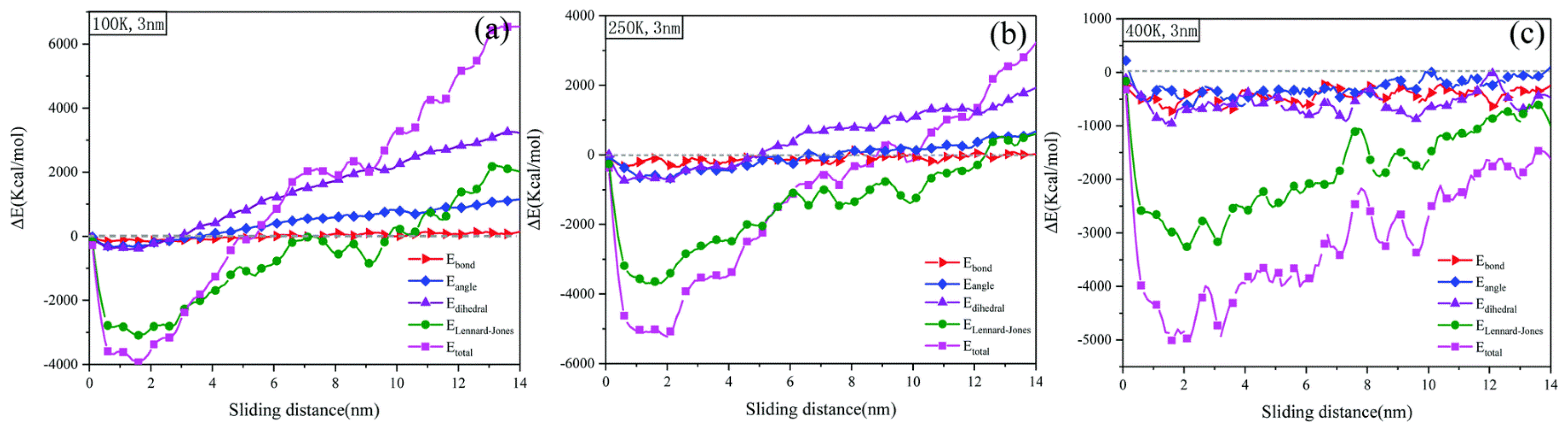 - Liu, D.; Li, H.; Huo, L.; Wang, K.; Sun, K.; Wei, J.; Chen, F. Molecular dynamics simulation of the lubricant conformation changes and energy transfer of the confined thin lubricant film. Chem. Eng. Sci. 2023, 270, 118541. [Google Scholar] [CrossRef]