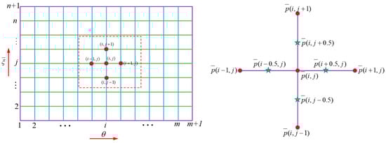 The finite difference method has the advantages of high precision and fast convergence, etc. Therefore, the finite difference method is used to solve the partial differential equation of Equation (2), and the solving process is shown in Figure 2. nodes are set in direction , and nodes are set in direction . The and boundaries are periodic boundaries, and the and boundaries are atmospheric boundaries.