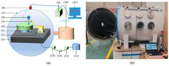 Static characteristics test of different environmental pressures: (a) schematic diagram; (b) test equipment.