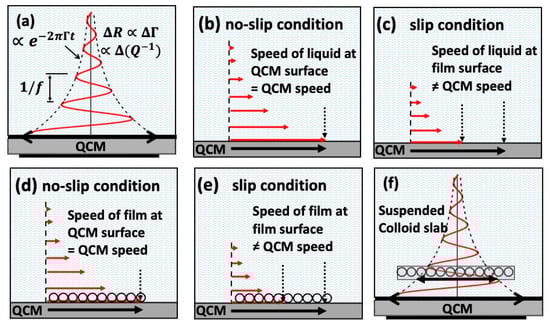 For rigidly attached films deposited onto a QCM electrode (Figure 2a), the negative frequency shift is described by equations derived by Sauerbrey in the 1950s []: