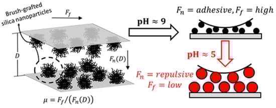 - Riley, J.K.; Matyjaszewski, K.; Tilton, R.D. Friction and adhesion control between adsorbed layers of polyelectrolyte brush-grafted nanoparticles via pH-triggered bridging interactions. J. Colloid Interface Sci. 2018, 526, 114–123. [Google Scholar] [CrossRef]