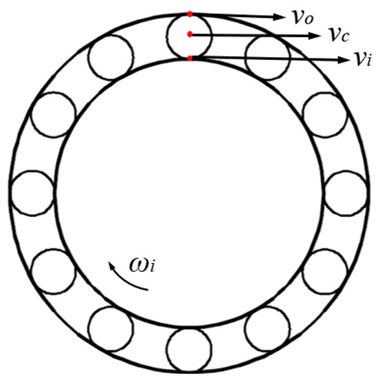 where vi represents the linear velocity at the contact point with the inner race, and vo represents the linear velocity at the contact point with the outer race.