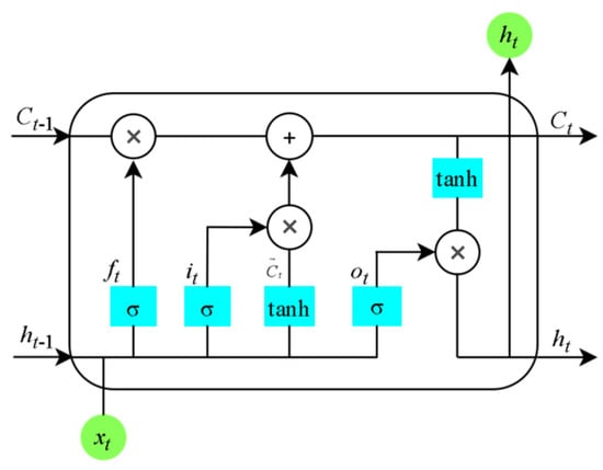 The long short-term memory (LSTM) neural network is an improvement on the recurrent neural network (RNN), aimed at solving the problems of gradient vanishing and exploding in the traditional RNN for long sequence modeling []. The structure of LSTM is shown in Figure 1.