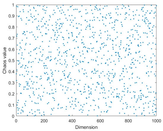 Through multiple experimental tests, this article sets the initial value = 0.3 and the mapping parameter = 2.595, thus obtaining the chaotic value distribution map shown in Figure 3. As shown in Figure 3, the generated chaotic variables have good universality, which enables the initial dung beetle population to exhibit good adaptability and stability under various environmental conditions.