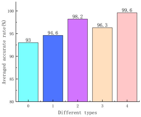 In order to test that the CSADBO algorithm was used to search for the optimal parameter combination in this article, we conducted a set of comparative experiments by controlling variables. The initial parameters used were as follows: the number of convolutional kernels = [8, 16], the number of hidden layer neurons = [10, 10], and the learning rate value was 0.1. Meanwhile, during the training of the model, the data order is randomized and shuffled at each iteration to improve the generalization of the model and reduce the risk of overfitting. However, this can also lead to slight differences in the experimental results. Therefore, in order to maintain generality, CNN-BiLSTM models with different parameters were subjected to five repeated experiments and an average value was taken. The experimental results are shown in Table 4 and Figure 16, where 0, 1, 2, 3, and 4, respectively, represent the initial setting of the parameters, the number of convolutional kernels with optimal parameters, the number of hidden layer neurons with optimal parameters, the learning rate with optimal parameters, and all parameters with optimal parameters. From Table 4 and Figure 16, it can be seen that due to large randomness and the randomness of parameter values set by experience in the network model, the selection of parameters is not scientific enough. Therefore, the average accuracy of bearing fault diagnosis is 93.0%. When using the control variable method to set the three parameters of the CNN-BiLSTM model to the best individual values, compared with the CNN-BiLSTM model set of initial parameters, the diagnostic accuracy obtained increased by 1.6%, 5.2%, and 3.3%, respectively. When the parameters of the model are all optimal, the average accuracy obtained is 99.6%. Compared with the initial parameters and the model with a single optimal parameter, the accuracy increased by 6.6%, 5.0%, 1.4%, and 3.3%, respectively. Therefore, it can be fully proved that the CSADBO-VMD-CNN-BiLSTM bearing fault diagnosis model described in this paper has a high diagnostic accuracy, verifying the effectiveness of the model.