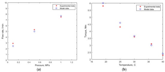 Models’ prediction compared to the experimental data (a) on lubricant flow rate; (b) on friction torque.