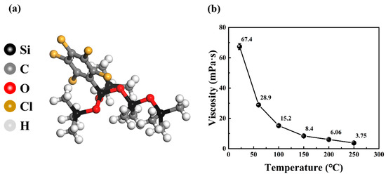 (a) The molecular model of CPSO and (b) the viscosity result of CPSO at various temperatures.