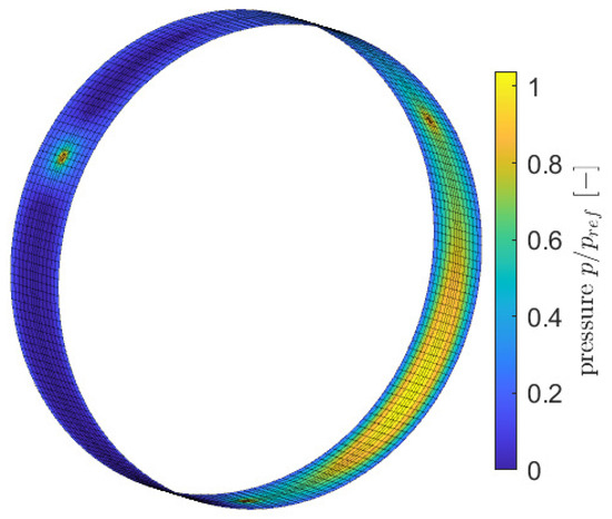 The Reynolds equation is solved using the Finite Element Method on a 2D mesh. The FE formulation is given in Equation (10) [25,31]: