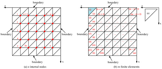 In this paper, linear triangular elements are chosen as the fundamental units for FEM. The three nodes of the triangle, arranged counterclockwise, are denoted as i, j, and m. The integral term in Equation (2) expands as follows: