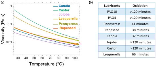 - Zeng, Q. The lubrication performance and viscosity behavior of castor oil under high temperature. Green Mater. 2021, 10, 51–58. [Google Scholar] [CrossRef]