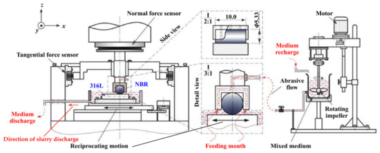Schematic diagram of the abrasive wear tester with an attached mixing system [117].