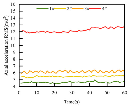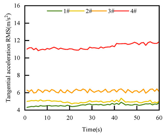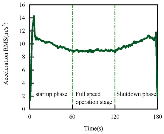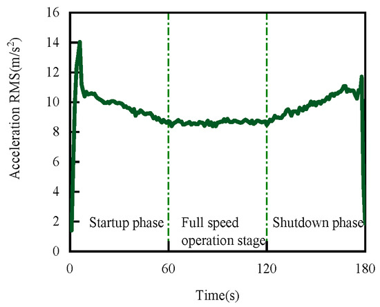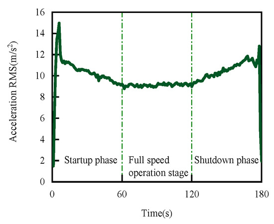 4.1. RMS of Face Vibration Acceleration Change Law during Starting and Stopping Process