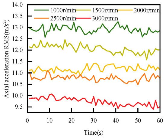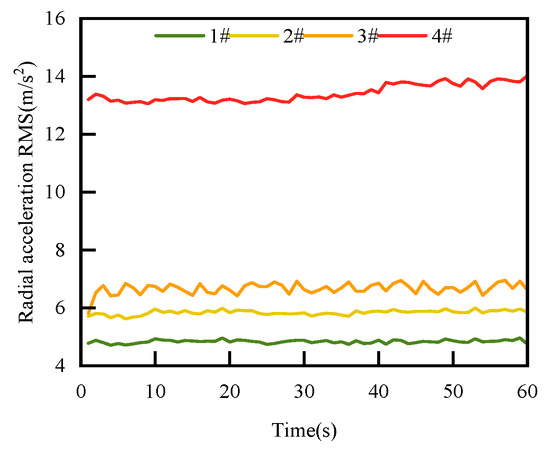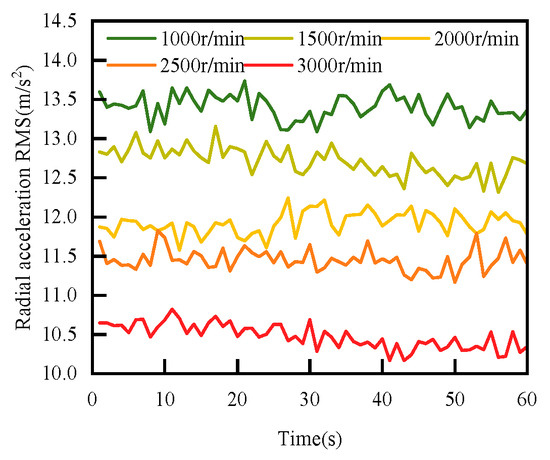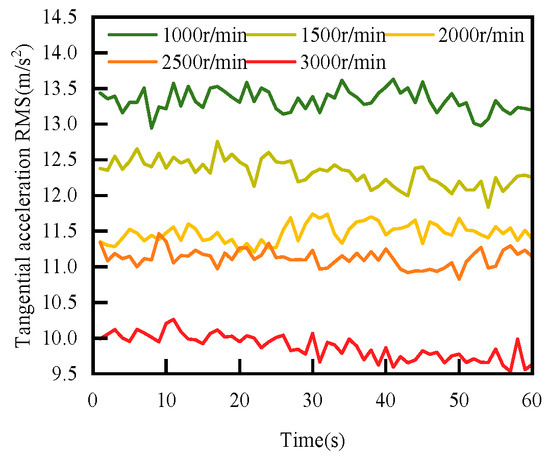 4.2. The RMS of the Face Vibration Acceleration Change Law with the Rotation Speed Law